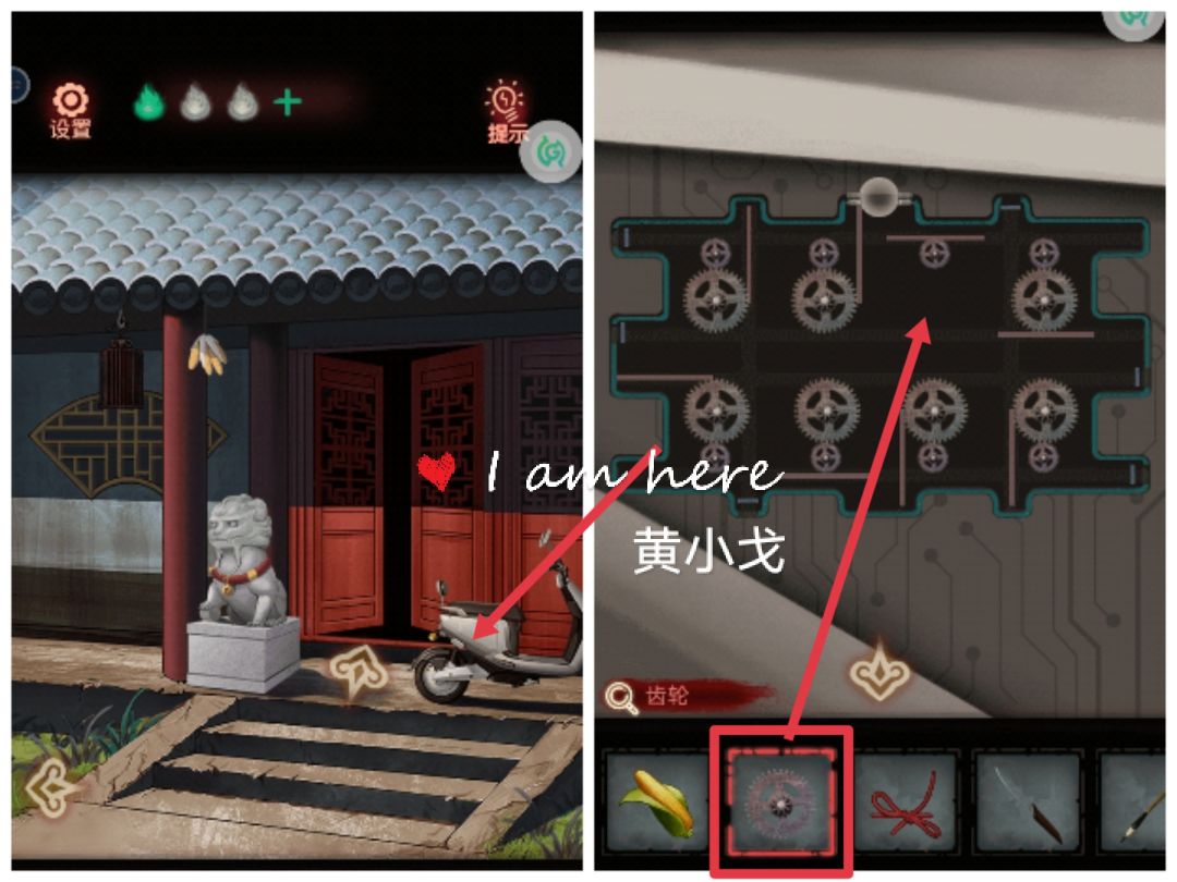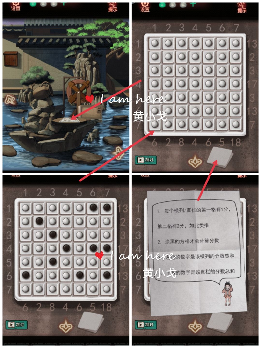 12.(院子-中间场景)点击棋盘,查看旁边的纸,根据纸上的线索调整棋子,触发剧情
