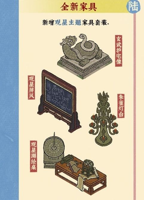 宅邸新增星宿主题家具4个如【观星屏风】!