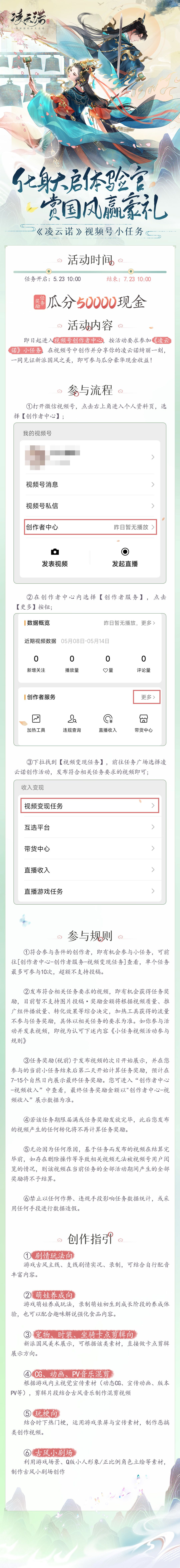 自5月23日起,《凌云诺》将在微信视频号,展开为期2个月的视频创作小任务~