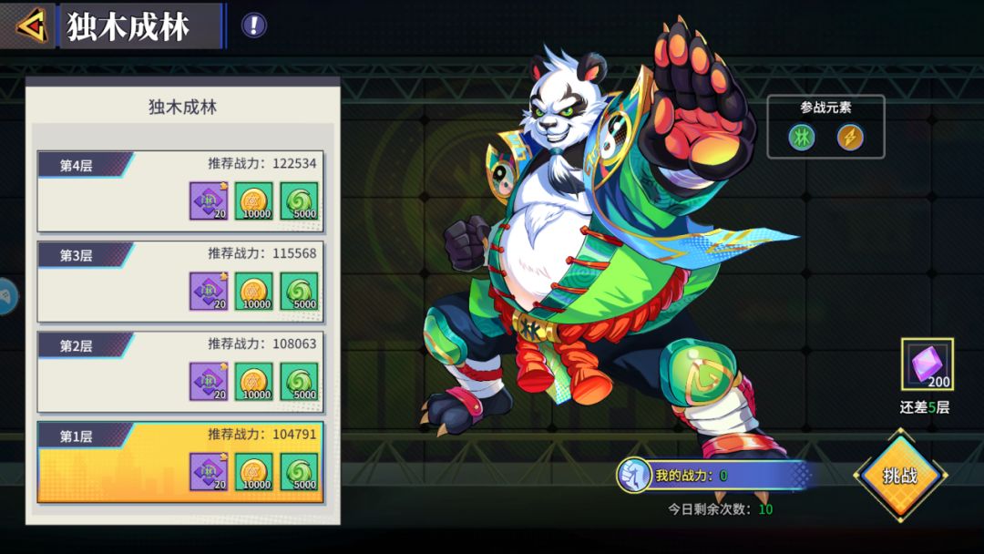 3. 每天开放一种元素塔,开放挑战的每种元素塔,当天最多挑战10层。