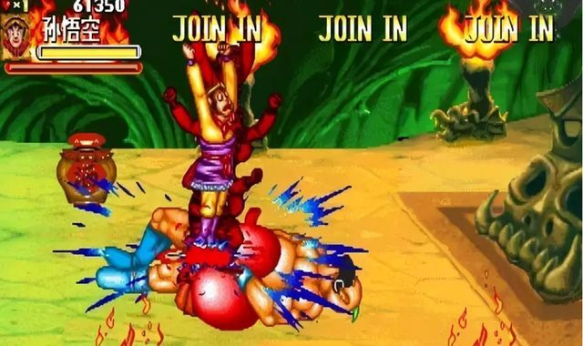 《西游释厄传》这个排名其实有点争议,因为游戏本身就有五行相生相克的属性,所以存在着有的关卡用猴子强,有的关卡用老沙强的情况,不过当年在街机厅,用猴子的还是多数。孙悟空上手简单,金箍棒攻击距离远打怪有奇效,波动功伤害很高,各方面都很平均,缺点是在水关时被克制。