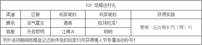 《世界OL》520活动获奖名单