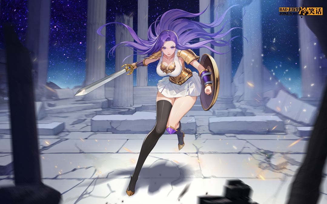 繁星笼罩的夜幕之下,坍塌的神殿中刀光剑影,雅典娜一手举盾一手举剑,正竭力对抗未知的黑暗势力,看这架势仿佛战斗已经进行了好久,雅典娜姐姐加油哇!