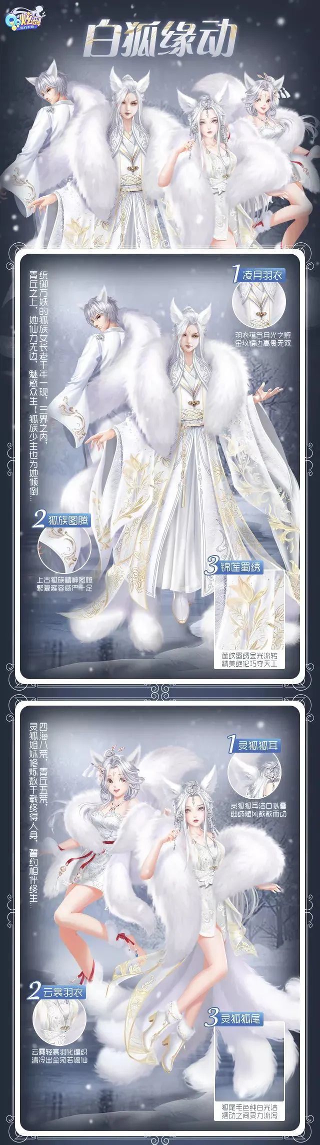 稀世套装-雪岭狐仙(白狐缘动)将在明天(5月24日)10:00返场【寻宝之旅-夕夜祈福】,九尾白狐的出尘风姿,等着小主人们亲眼去康康啦~