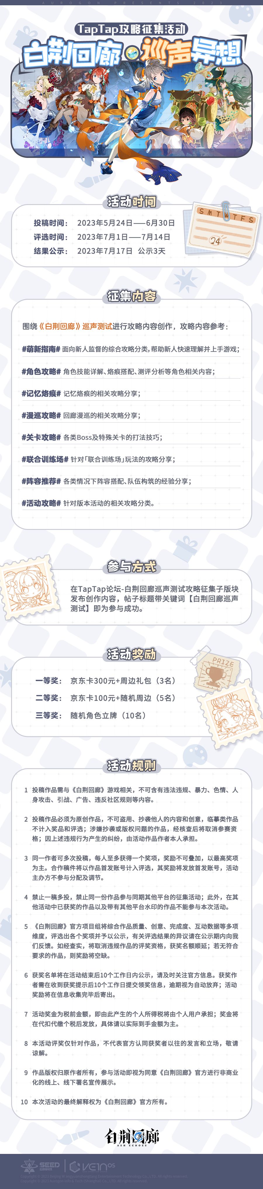 白荆回廊巡声测试TapTap攻略征集活动正式开启,参与活动即有机会赢取京东卡、限量周边等好礼!