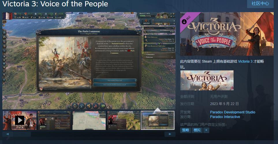 《Victoria 3: Voice of the People》将在 2023 年 5 月 22 日推出,建议售价 $14.99/£12.99/€14.99。