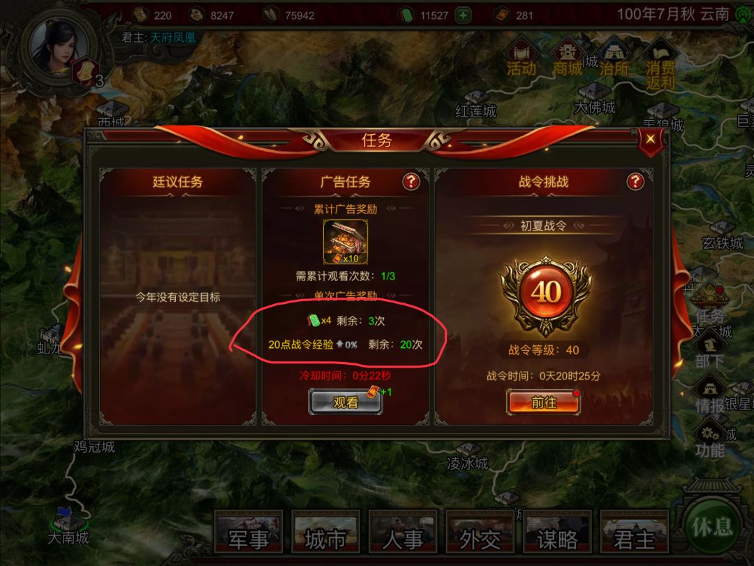 战令经验一直显示剩余20次,看了几次广告依然不减次数!如图:
