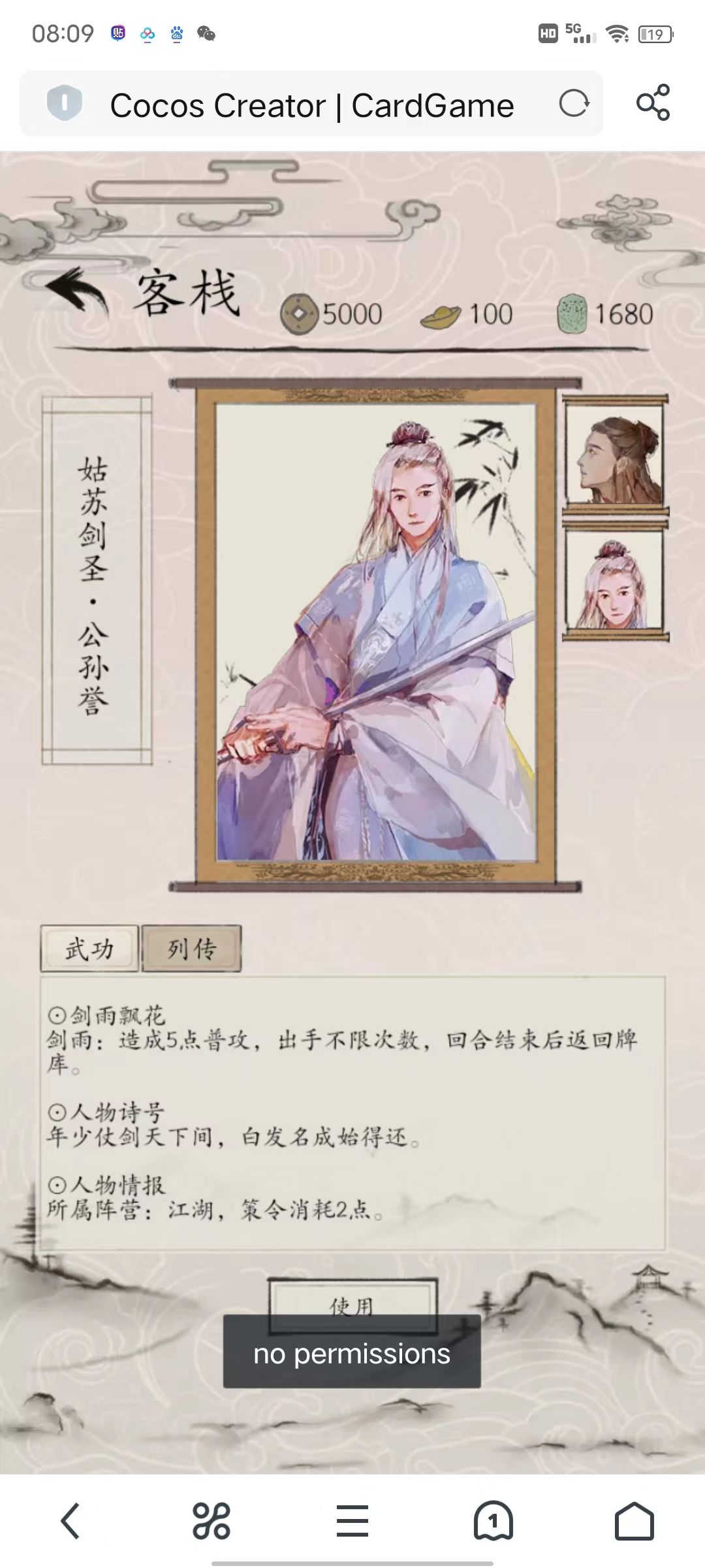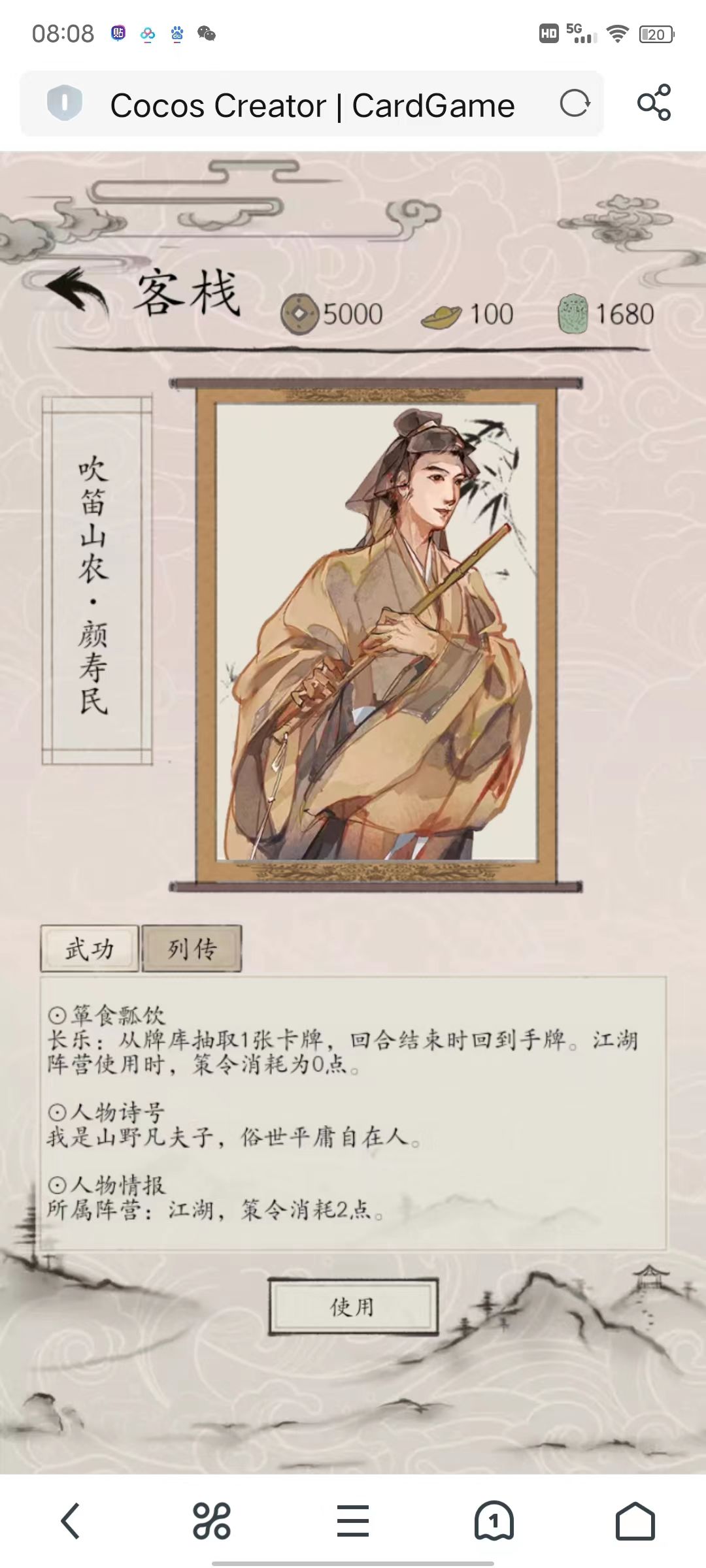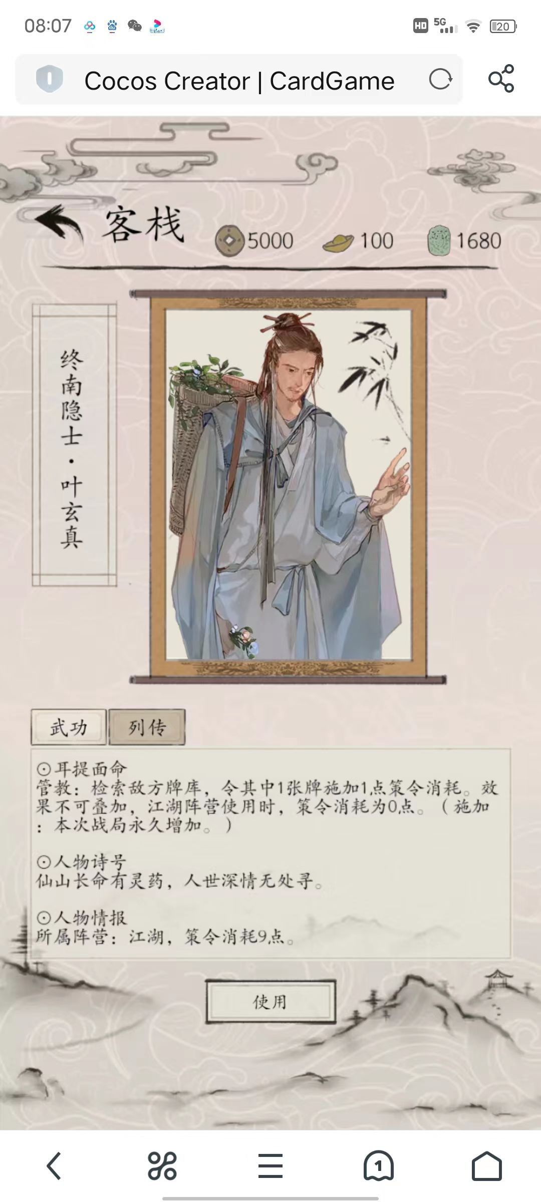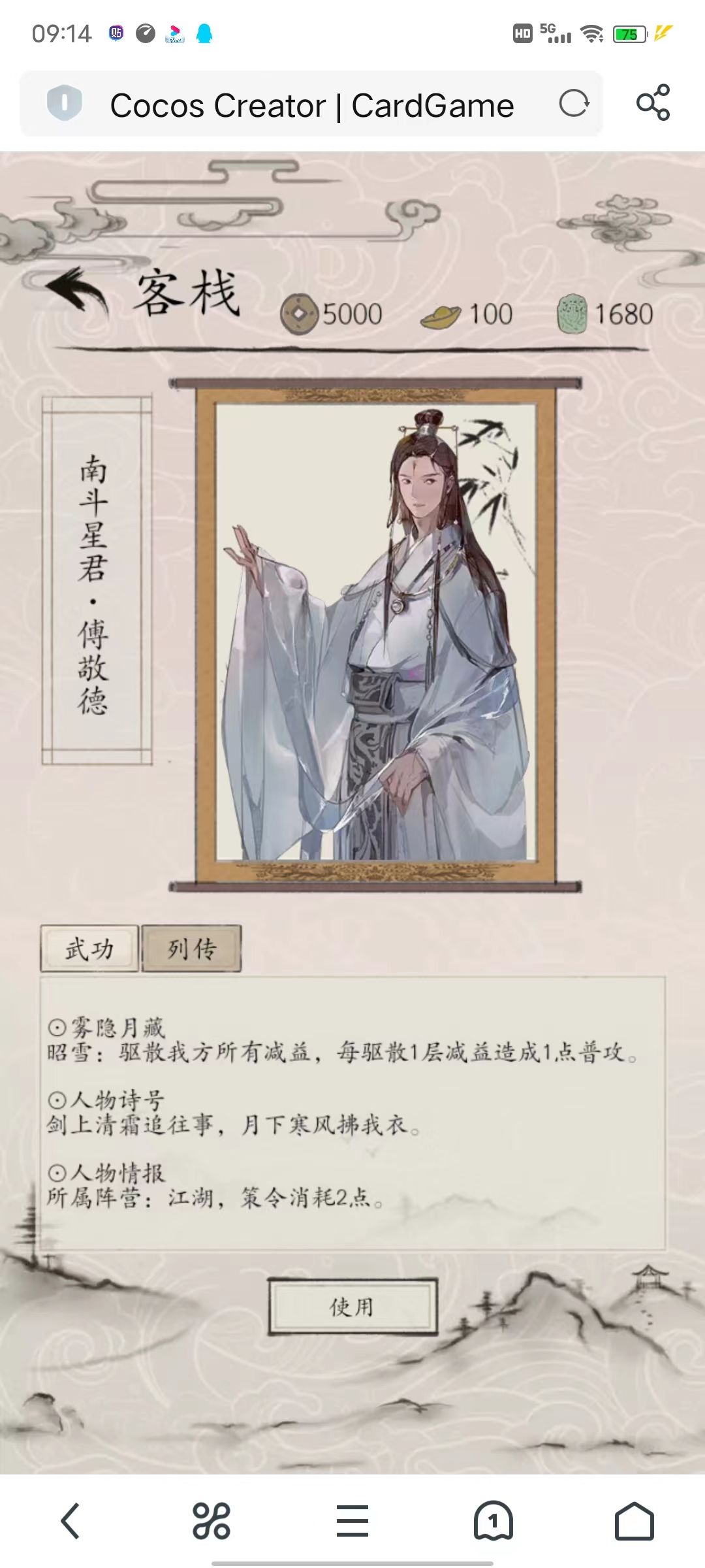 江湖专属0费,可给手牌永久减1费。一般手牌有剑圣优先剑圣防止后面不能及时拿到。优先级:剑圣>马玉枝=张九宫>段名成