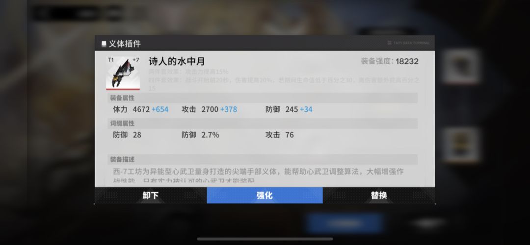 开了刷T1装备后,运气比较好,出了一个黑天鹅的礼服5.2爆伤词条的右上角装备,当时的面板是5/55.7。可是很奇怪的是,过了会儿打开游戏一看面板又变回了5/50,装备的爆伤词条消失了,同样的词条位置变成了93小攻击,我不知道你们有没有遇到过这种情况,这是第一次,是前天的时候发生的。我很确定我没有把装备融了,因为当时就只有两个T1装备