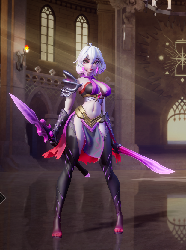 她大胆的眼神中流露出自信与果敢,是一位充满决心与致命的女刺客。她的气质神秘而妩媚,风情万种却又霸道无敌,深深吸引着人们的眼球,让人不敢小瞧。