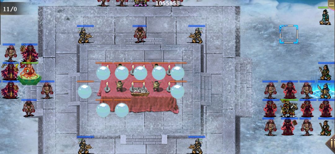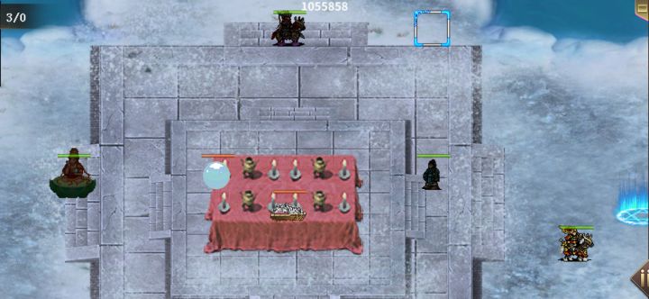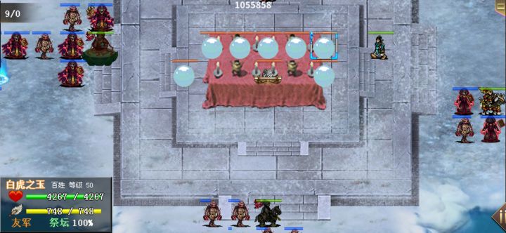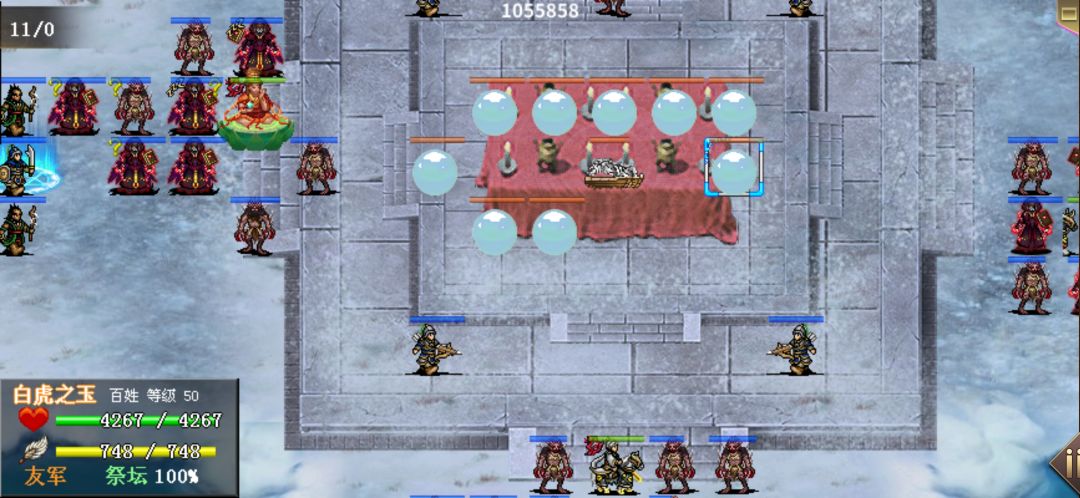 5.华佗,最好吃到200敏捷+2速度,穿医生套(辅助穿真白虎),在大家都站位好之后就跑到河里开始,然后马上回到图中的位置挂机就行,看看顶不住了就放个白虎。需要注意的一点是好像第9回合,下路有个死灵会上来揍华佗,碰到这样的情况就读上一回合的档位,把华佗拉到右上方去。