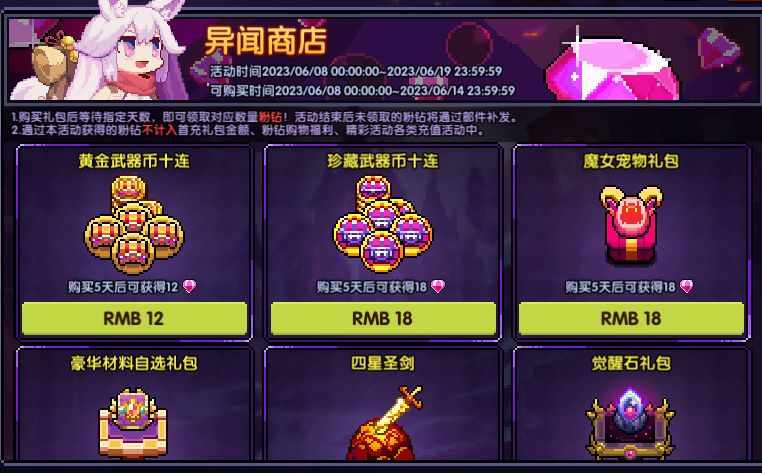 异闻商店活动限时上线!购买礼包后可在活动时间内领取100%的粉钻返利~