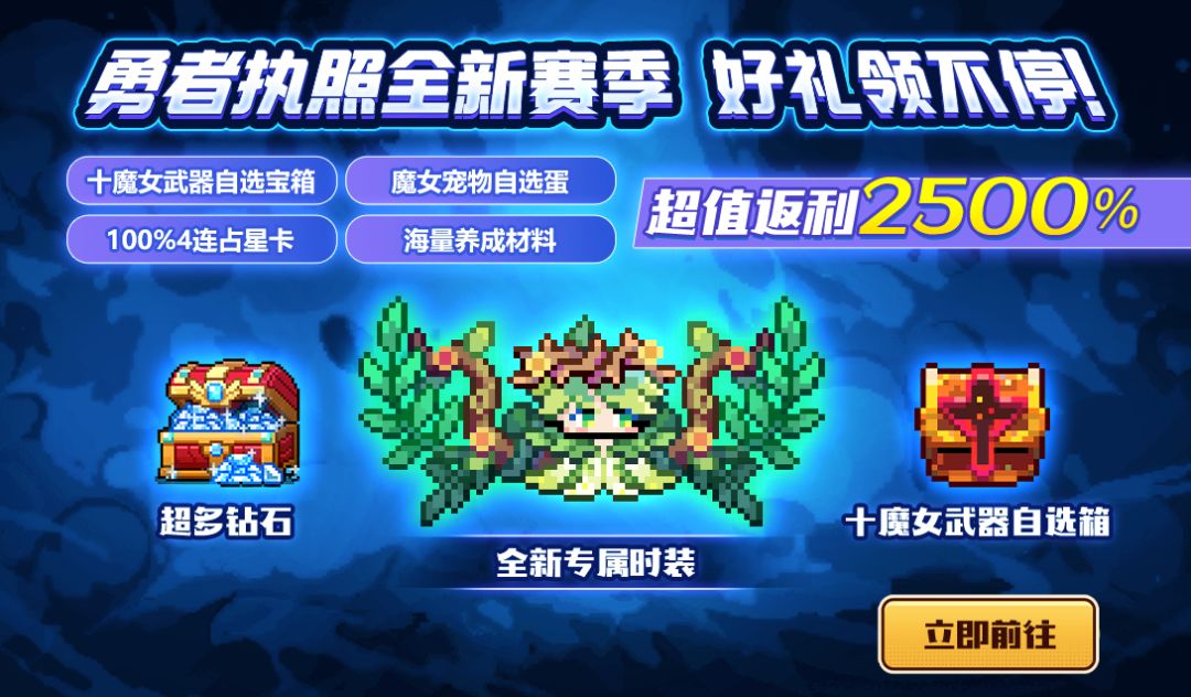 - 解锁最新赛季勇者执照典藏版,可以获得全新时装【丰茂之灵】以及其他大量材料!