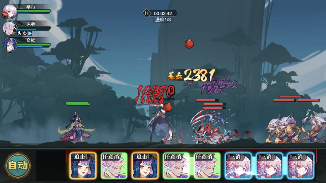 大多数三消型的英雄,其核心技是依靠三消进行触发,如例子中的毕方,自身三消时会额外触发强力的直线穿透伤害技能。