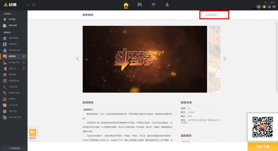 2、在游戏界面左上角选中并进入《绯梦契约》社区页面