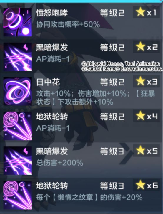 技能解析:提升自身攻击力加成与伤害增加,并且根据当前懒惰之纹章数量来获得多种不同的增益效果。