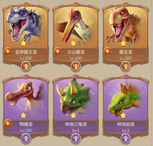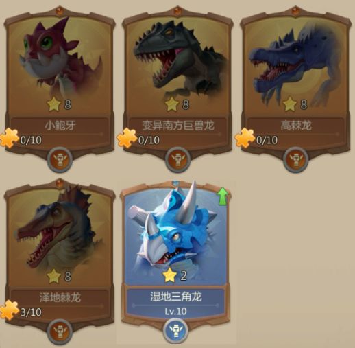 初期推荐阵容搭配:异特龙、南方巨兽龙、牛龙、泽地大角龙+梁龙→剑龙
