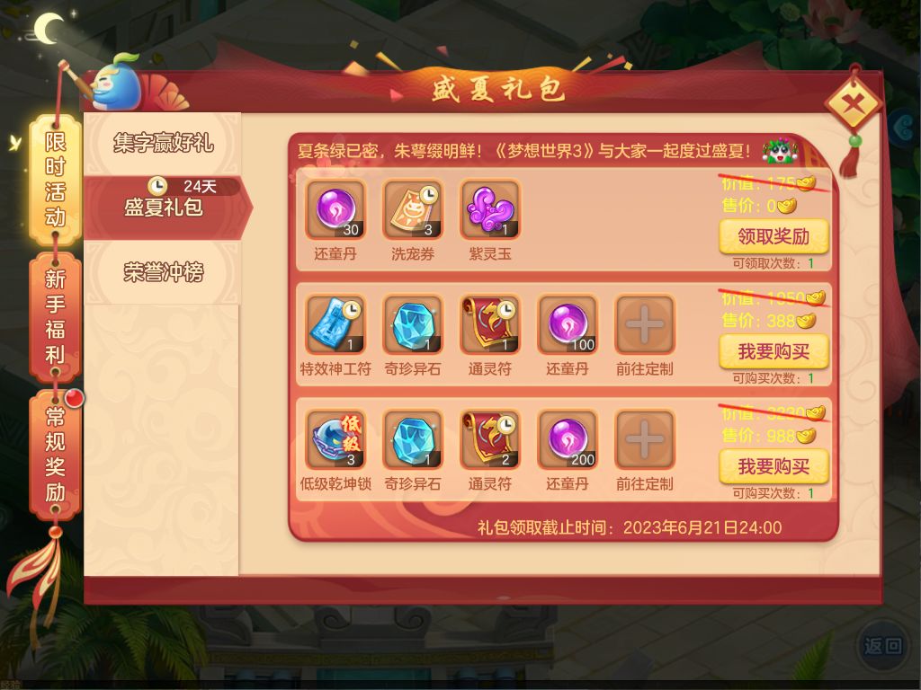 盛夏礼包限时上线