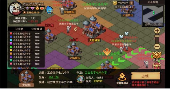 3、公会争霸大战(预计7月上线)该玩法为最多10个公会进行占领格子对战,每赛季发放争霸奖励,咸鱼也能躺赢,先放几张示意图