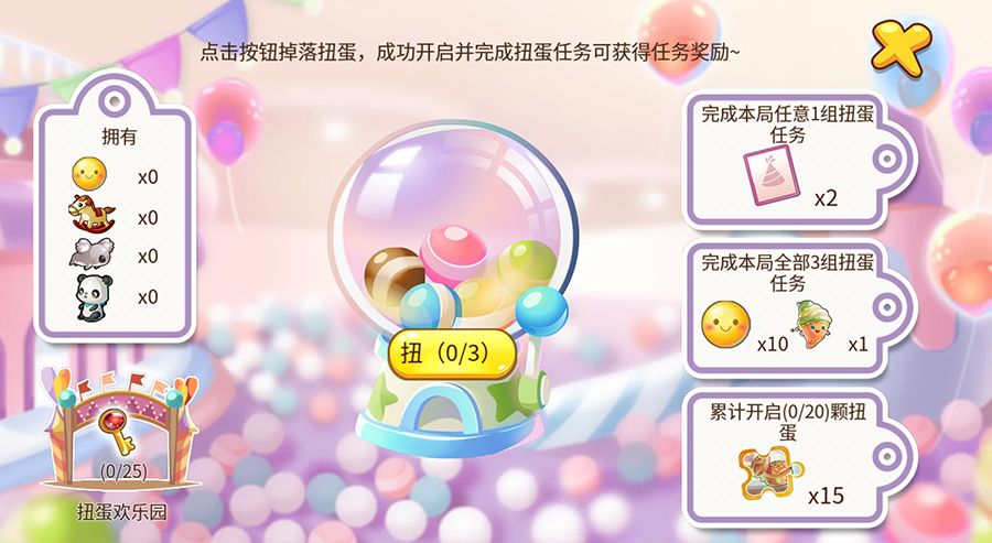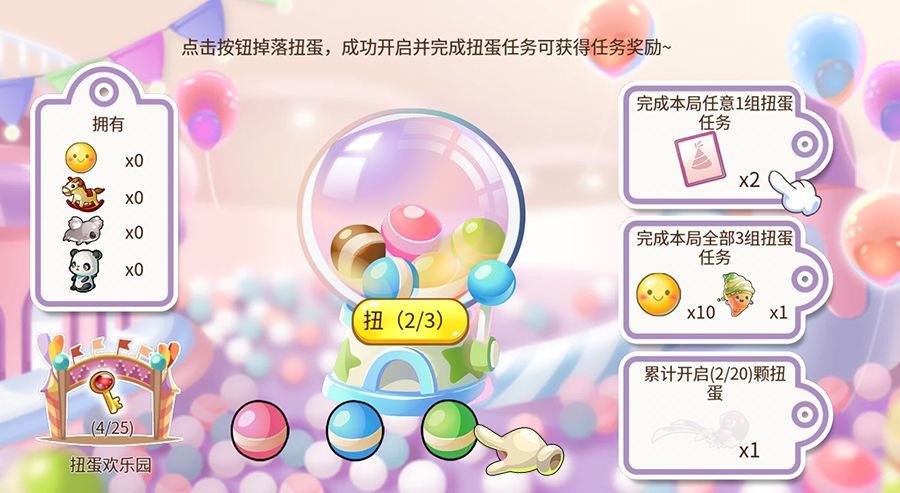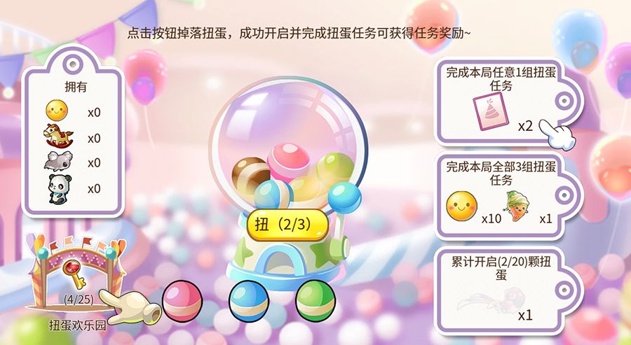 点击扭蛋,成功开启并完成扭蛋任务可获得任务奖励~
