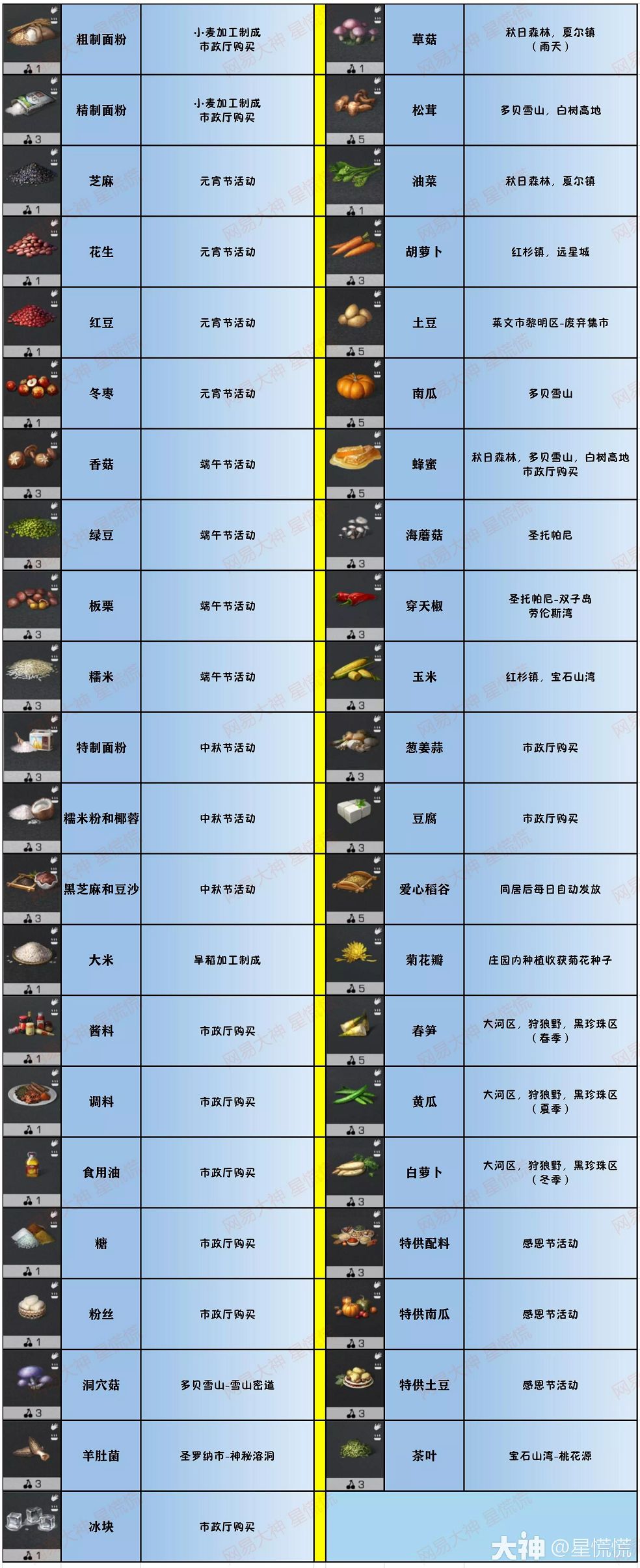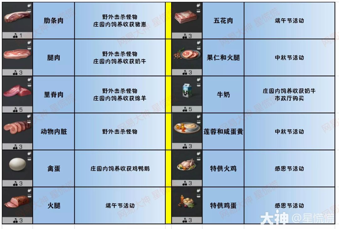 💎上图仅呈现各种食材的主要获得途径,部分食材也可在各种活动及其他玩法中获得。