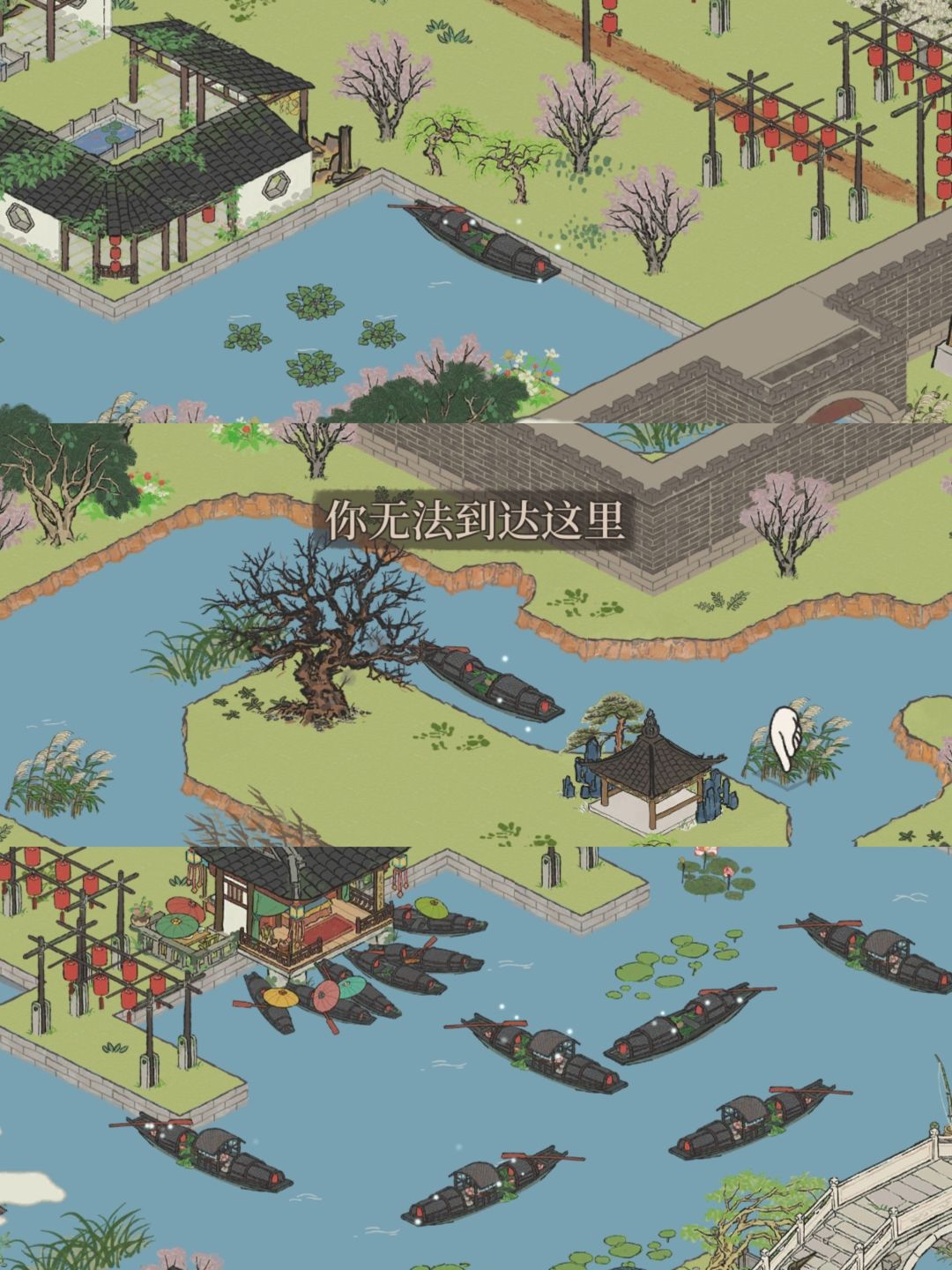 1.与董其昌对话需点击人物面前木门,再铲除三月泡即可到达(人物后面的发光乌篷船可点击,会得到玉山果和补天,玉山果后面会用到)