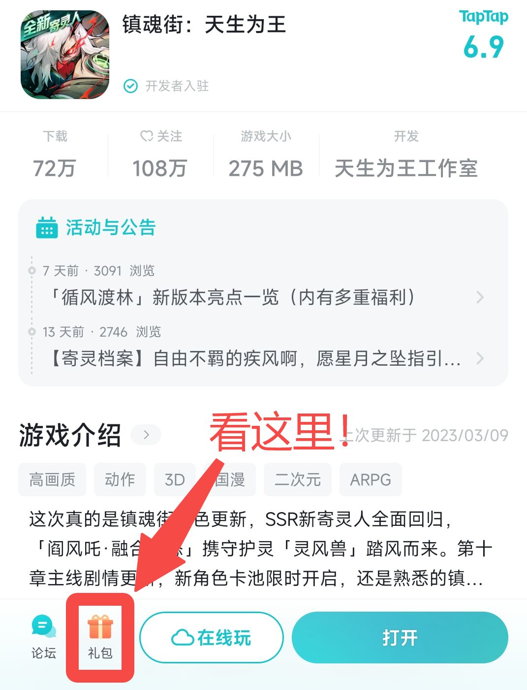 所有TapTap平台注册的镇魂将都可以在平台游戏商店详情页,