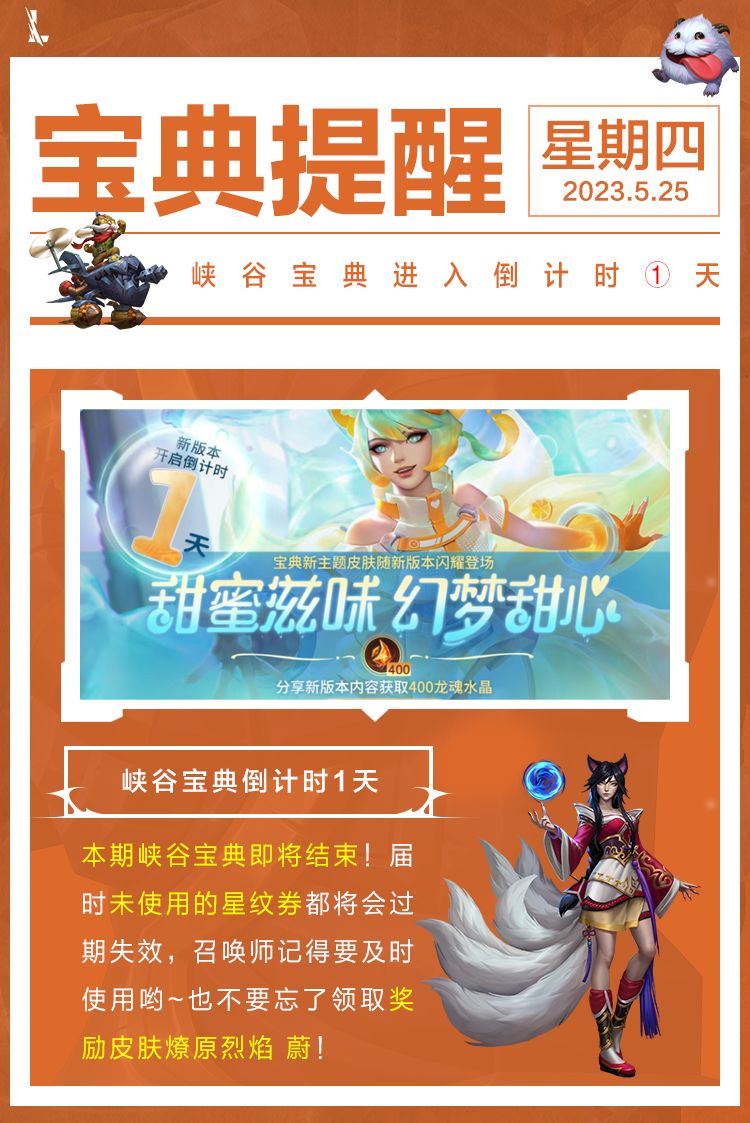 【峡谷宝典】:最甜峡谷宝典降临!与幻梦甜心 阿狸一起探寻新版本~