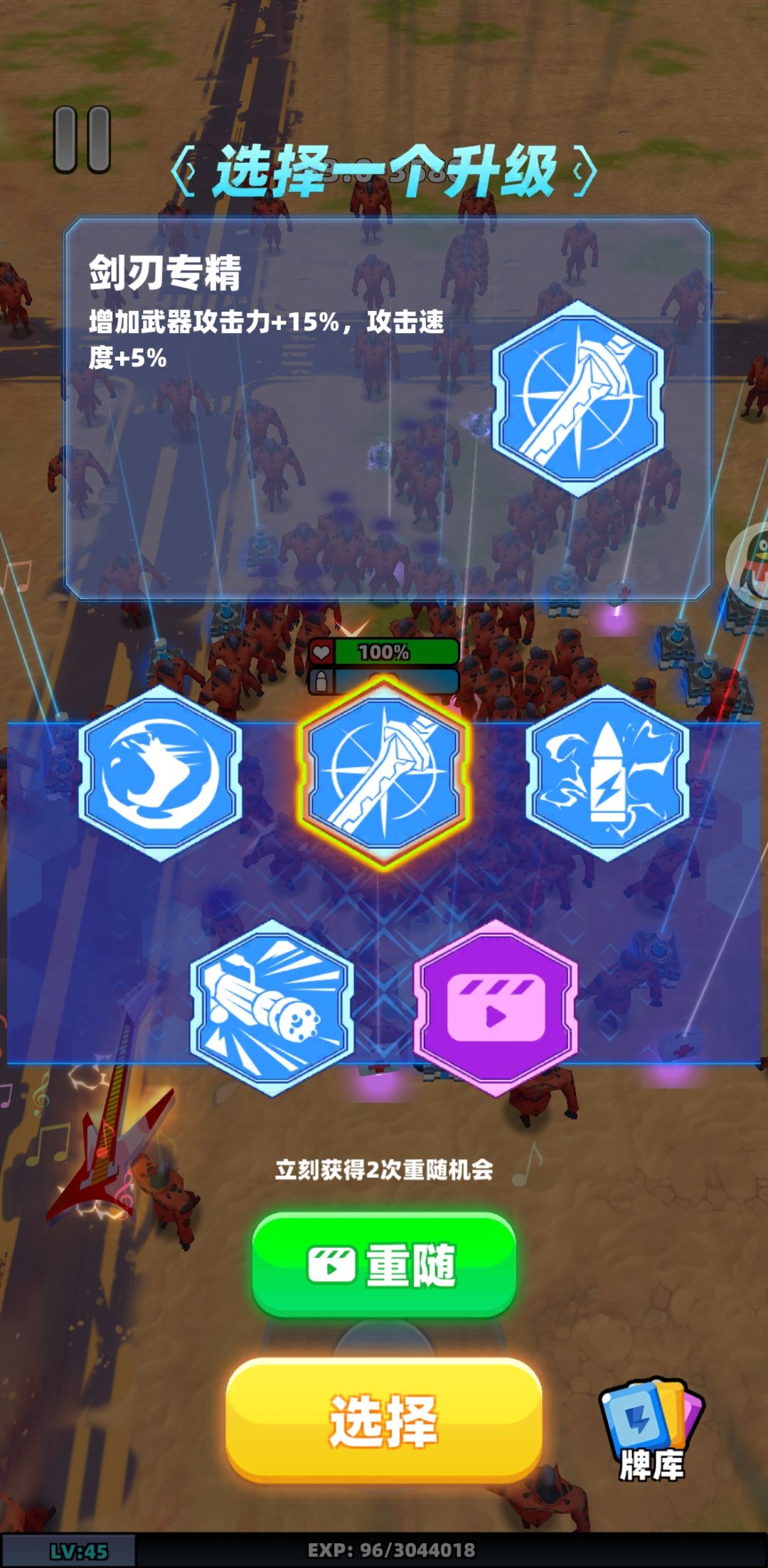 为了不破掉站定射击的加成,拾取范围也要选,捡血包触发治愈摇滚。