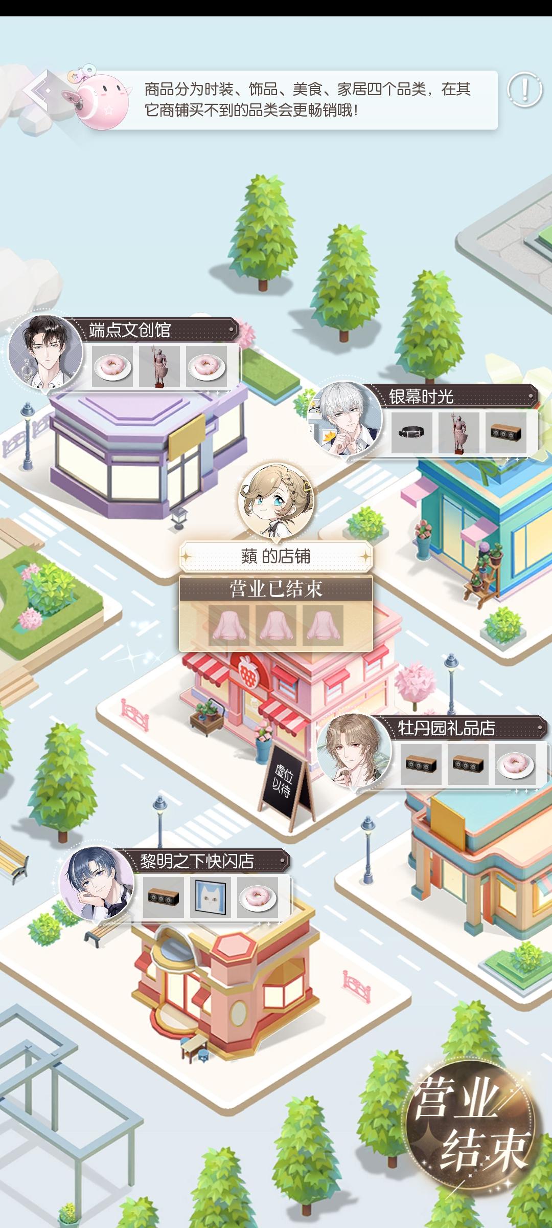 比如我这里他们四个没有买时装的,就可以把店铺全部上时装,记得宣传和培养店员也是和时装相关的,要区分开时装和饰品哦。