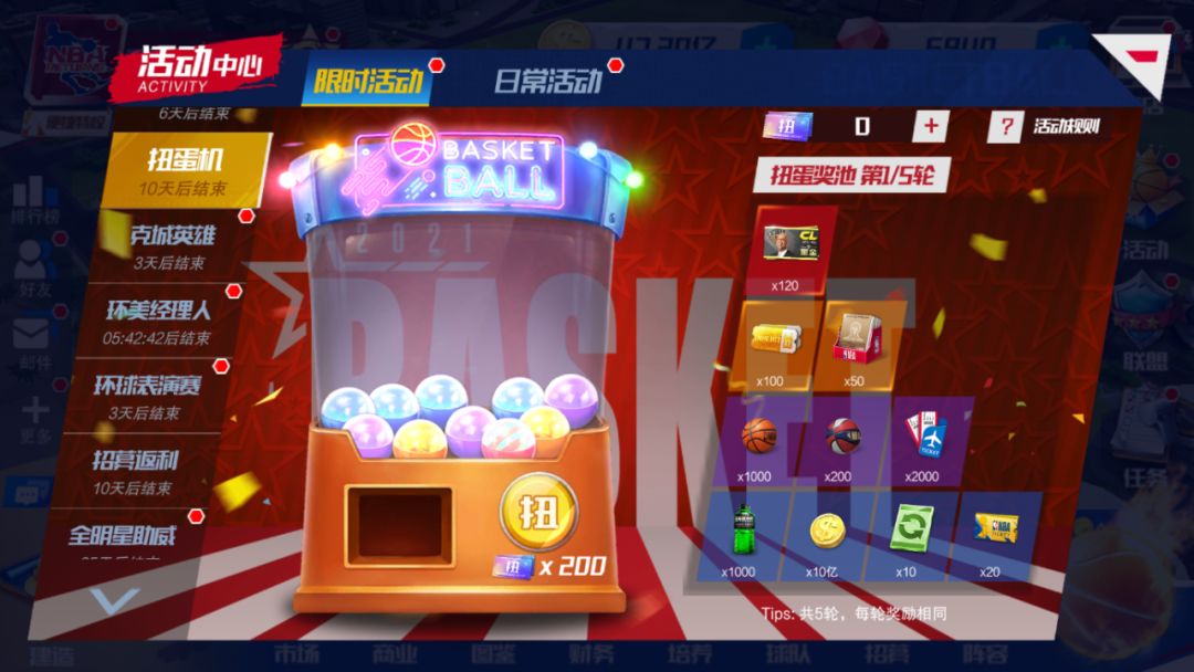 使用“扭蛋券”参与可参与抽奖,摇完扭蛋机中扭蛋,必得黑金名宿——贾巴尔!