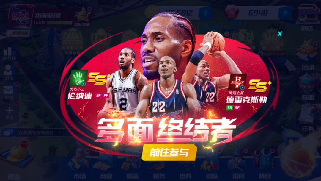 比赛时,伦纳德抢断能力增加20%,保罗抢断能力增加20%。