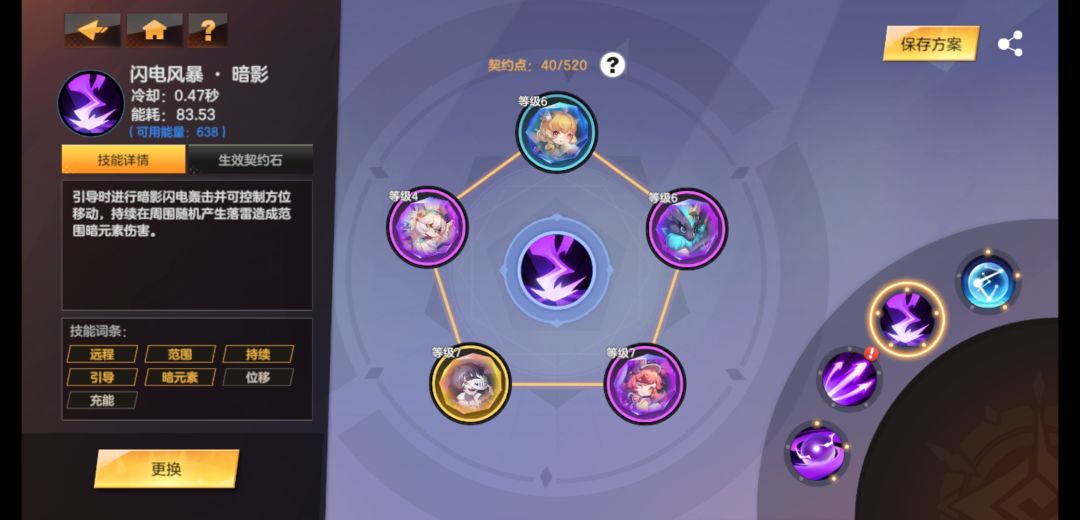 天赋前期缺点数就这么点了,位移减蓝搭配节能守护,搞点回能,可以无限放闪电风暴,只需要按方向躲技能就行,之后的一些增伤提升也很明显,找不到这些点在哪里的可以在天赋页搜关键词。