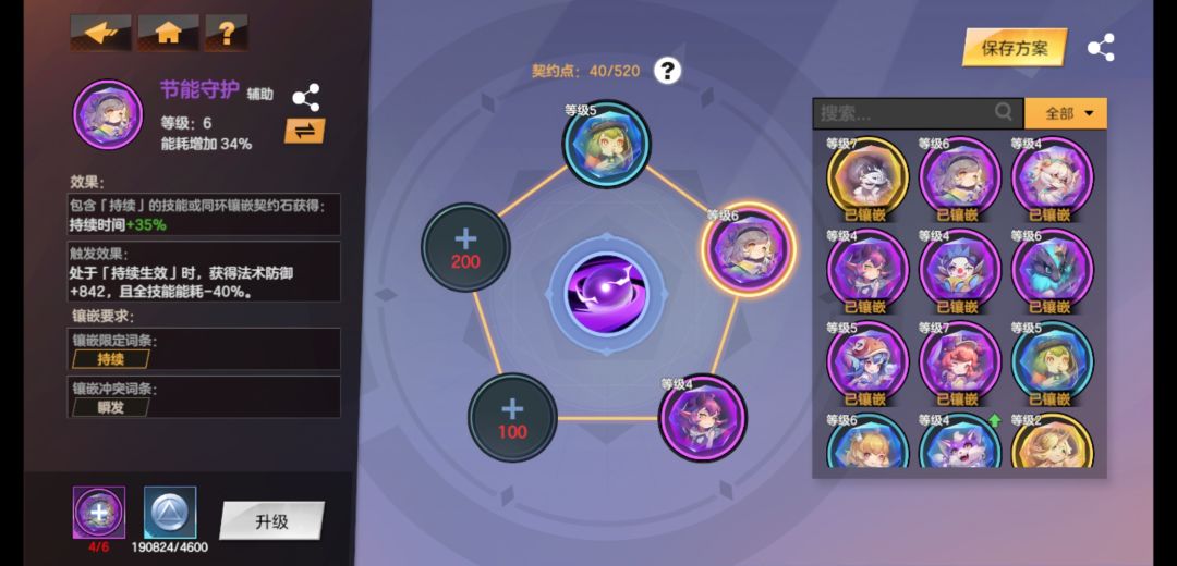 正常这个搭配也有几万秒伤了,通主线应该没什么压力,有赛季卡的自选礼包全选节能守护,别的技能石可以刷混沌,这个只能靠刷图爆,升级麻烦。