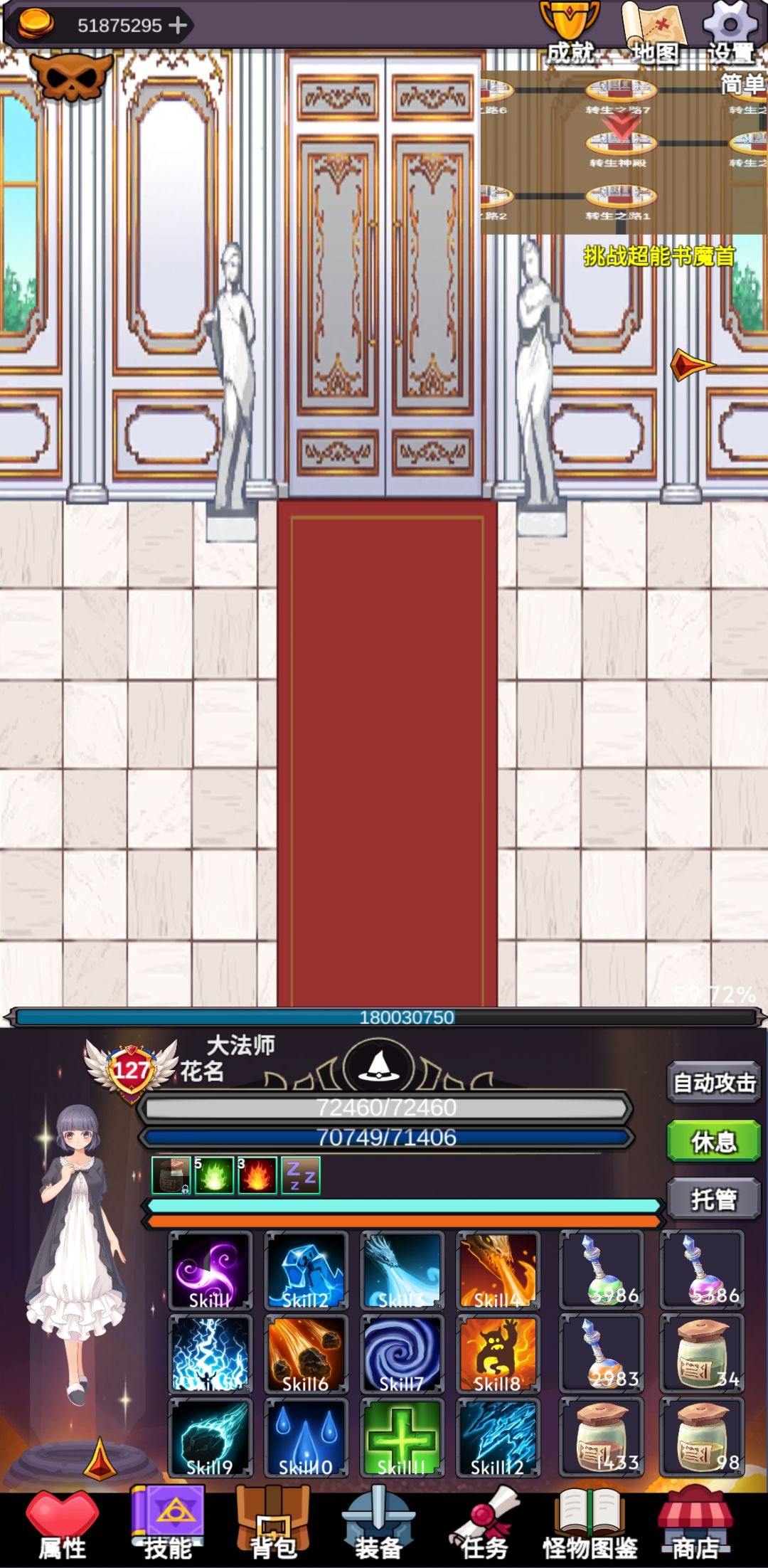 0转法师太难了,暴击流手动还容易暴毙,还是挂机流简单。虽然打怪满了一点,可是不需要操作挂着就行了