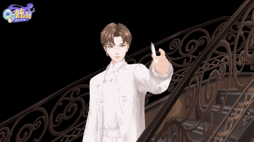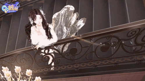 他从楼梯信步而来,抛下一片轻盈的羽毛,飘向心爱之人~