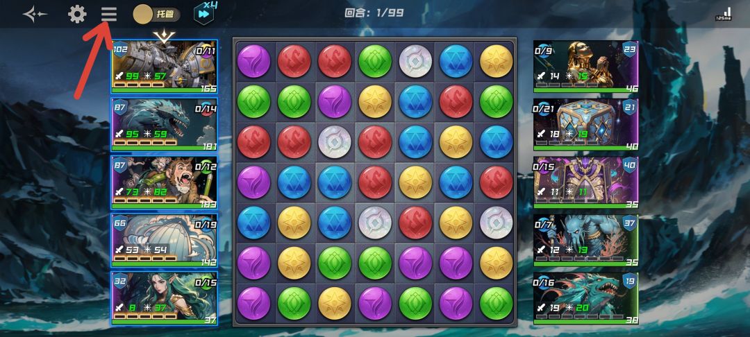1、进入战斗界面,左上角有个三横标志,点进去就能看到不同阵营的心能生成概率。