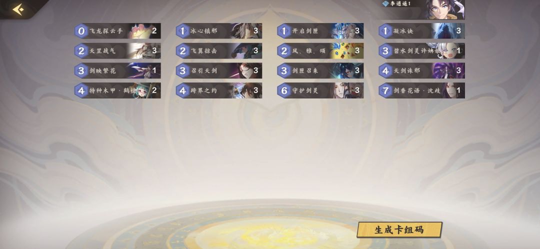 受到弃牌火、爆牌灵、法术雷等很少部署、部署回手、减攻没用的阵容的克制,减攻水逐渐淡出了了大家视野,但对于快攻的压制力还是很强的,因此我在传统减攻水的基础上将避世冰枢、冰波剑阵等牌去除,只留下一张剑映繁花定点封印敌方关键牌,并加入剑匣召来、天罡战气、召引天剑等输出牌,在减攻和进攻方面做了平衡,让卡组面对快攻慢攻都能有所应对。总体来说卡组就是比较全能,这也是上分最重要的点。