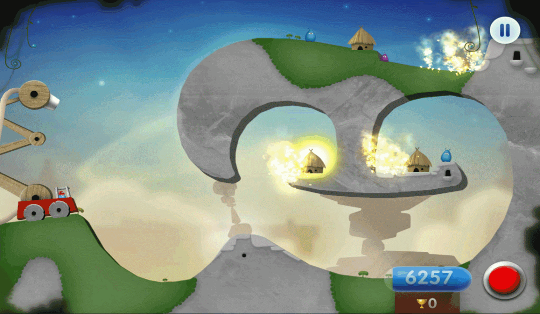 我们需要扮演的是类似于消防员的角色,在游戏的玩法上,主要是以物理特色为基础的操作,结合每个关卡的地形,使用安装在起重机上的水枪,控制水枪的高度、角度,并且需要移开各种障碍,或者转动齿轮,并且瞄准、发射!利用最少的水资源,去扑灭各种火灾,拯救这个星球。