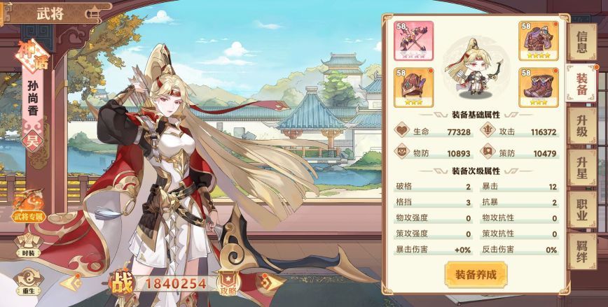 吕布主c,香香只升武器,配个只升防具的高顺,790这里是最难的,小的怪禁了香香,没办法只能用我这180万的香香主c去打大怪,走位拉扯还真打过了。说什么吴蜀强的你换诸葛亮周瑜来不被暴打才奇怪,战棋游戏4格射程和2格射程那可是天差地别。也别杠我是氪金了才强的,真氪佬都是金装备了都,我这装备真的不怎么样。游戏所有的资源都在塔里,600到800这里就是靠不断以战养战强化香香武器过来的,靠诸葛亮周瑜那两格攻击距离,怪绕过来两刀给你砍死了都还输出锤子,希望吹其他阵容的拿出点战绩出来