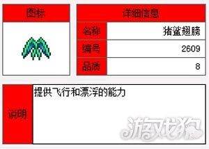 泰拉瑞亚是一款像素沙盒类游戏,在游戏中玩家能够和怪物战斗以及建造物品。不过对于很多新入坑的玩家来说,游戏中很多东西都不是特别了解。今天带来了猪鲨翅膀的介绍,各位不要错过哦。