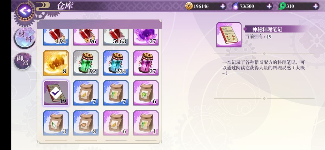 熟练度满了一点用都没,又不是说满了就能缩短料理时间或者其他,连个成就也没,更好玩的是那个笔记本又不能分解,商店100玉一个,要这么多干嘛→_→