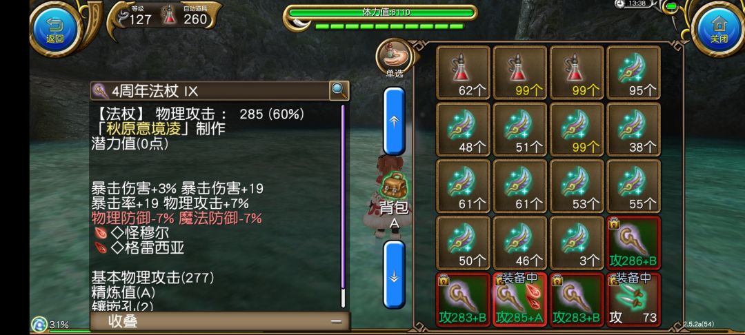 25(人物基础)+5(好战)+5(魔炮)+19(武器)+19(衣服)+22(料理)=95暴击+15(小熊)=110暴击