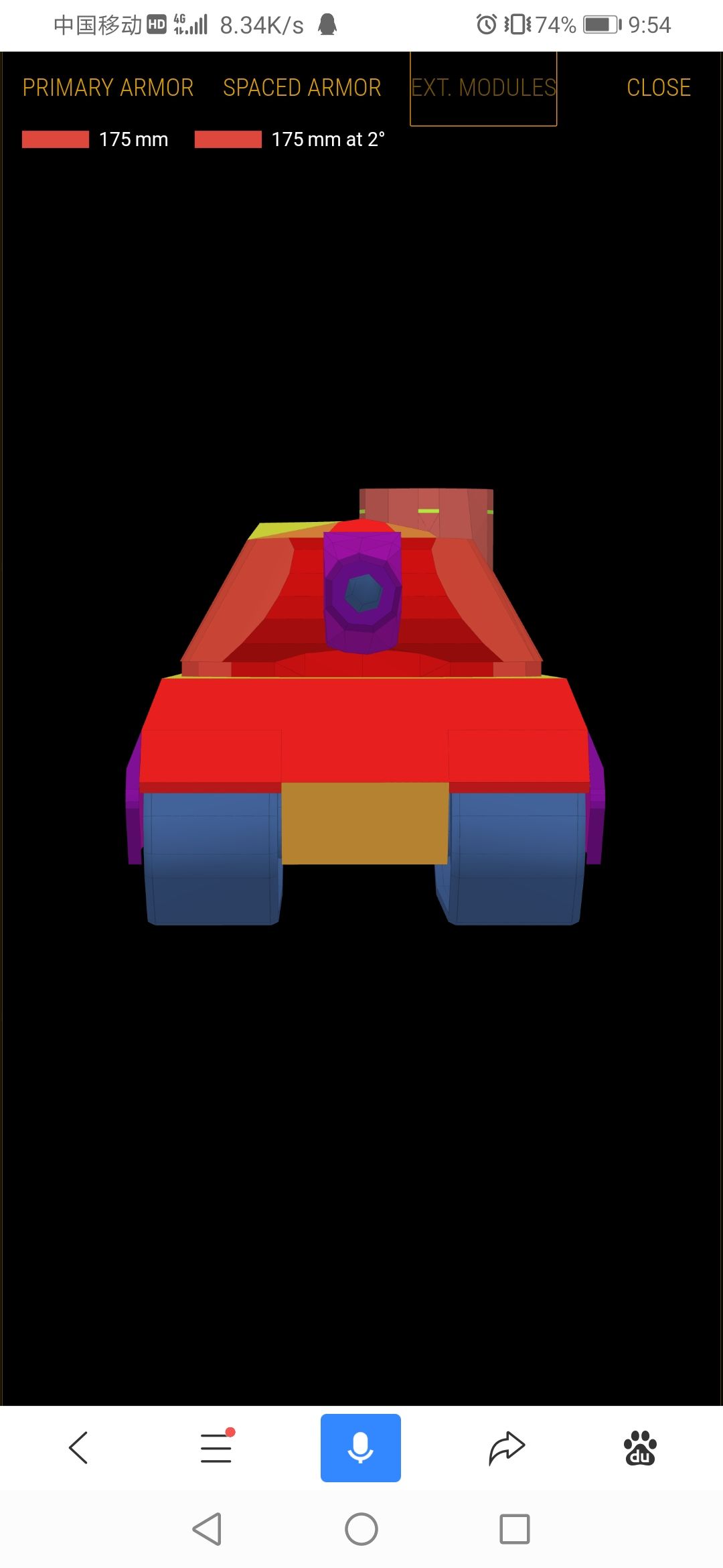 接下来是车体,猛犸的车体优缺点都非常突出,首上正对等效337毫米左右,几乎无人可以击穿,侧面无裙甲部分物理厚度为130毫米,下半部分则是100毫米的裙甲100毫米的车体,这意味着猛犸拥有极强的卖侧能力,这也是猛犸卡点抗线的本钱。
