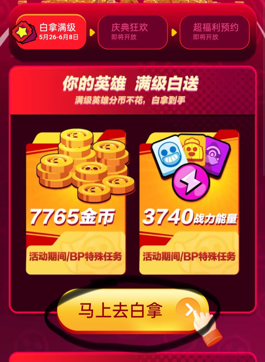 A3:无需在活动页面进行跳转,满级英雄资源是完成游戏中获胜任务获得的(如下图)