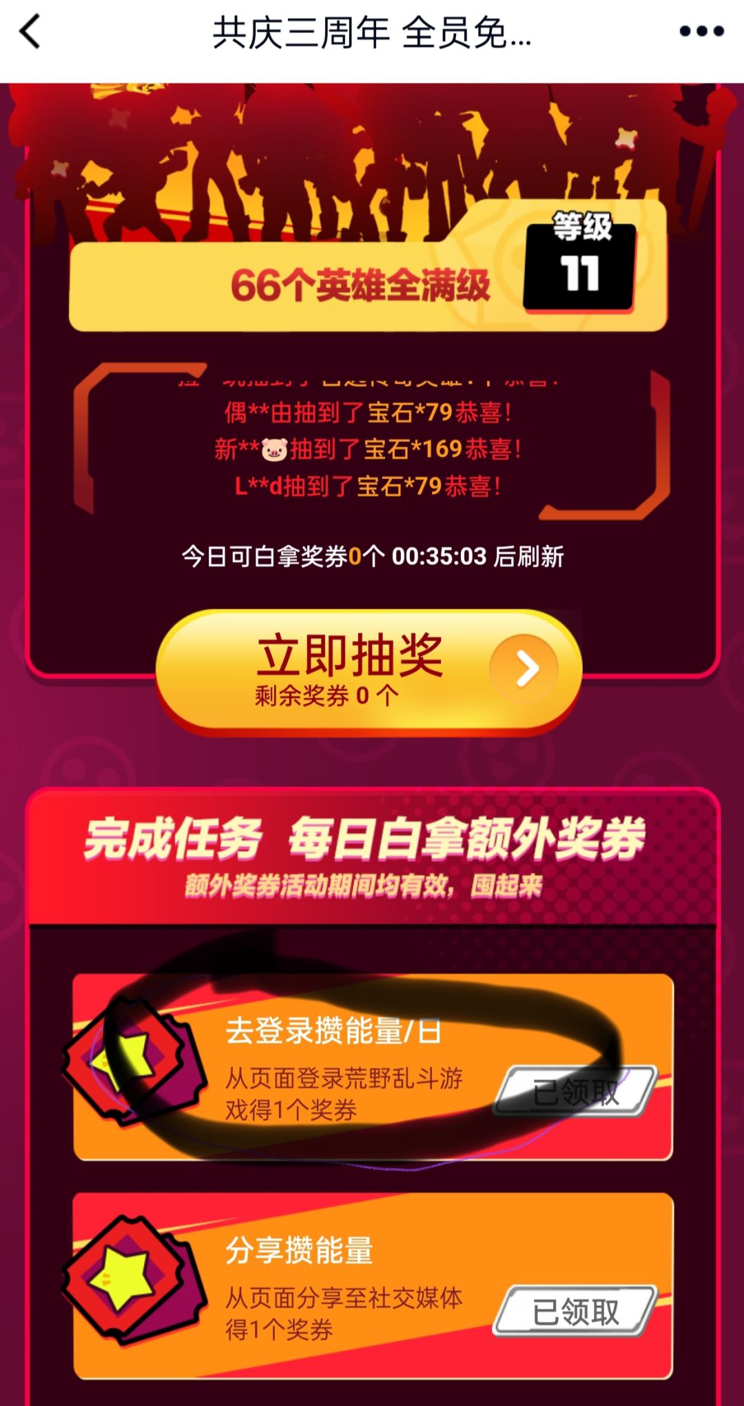 tips:此抽奖活动抽取的资源(200额外奖章)