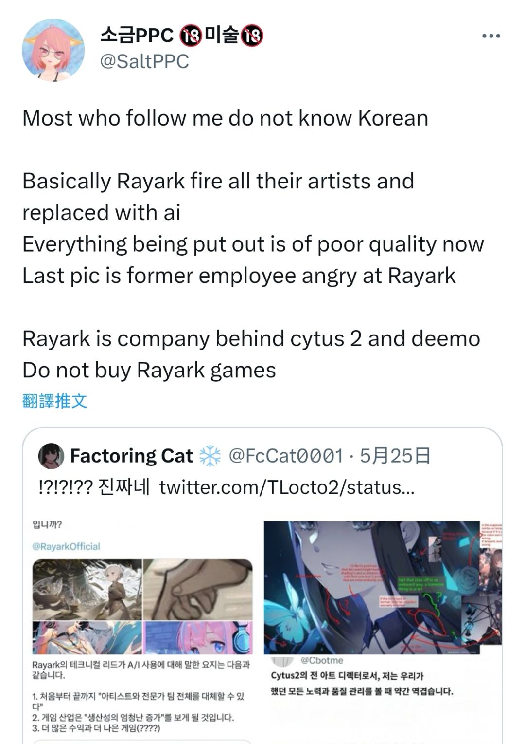 好的,所以我们得到了一些接近明确的确认,即 rayark 实际上正在使用 ai 来做东西,而这不仅仅是猜测。