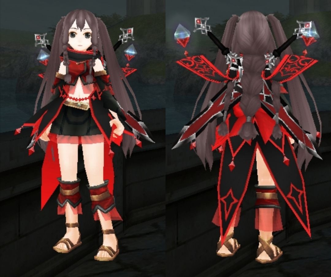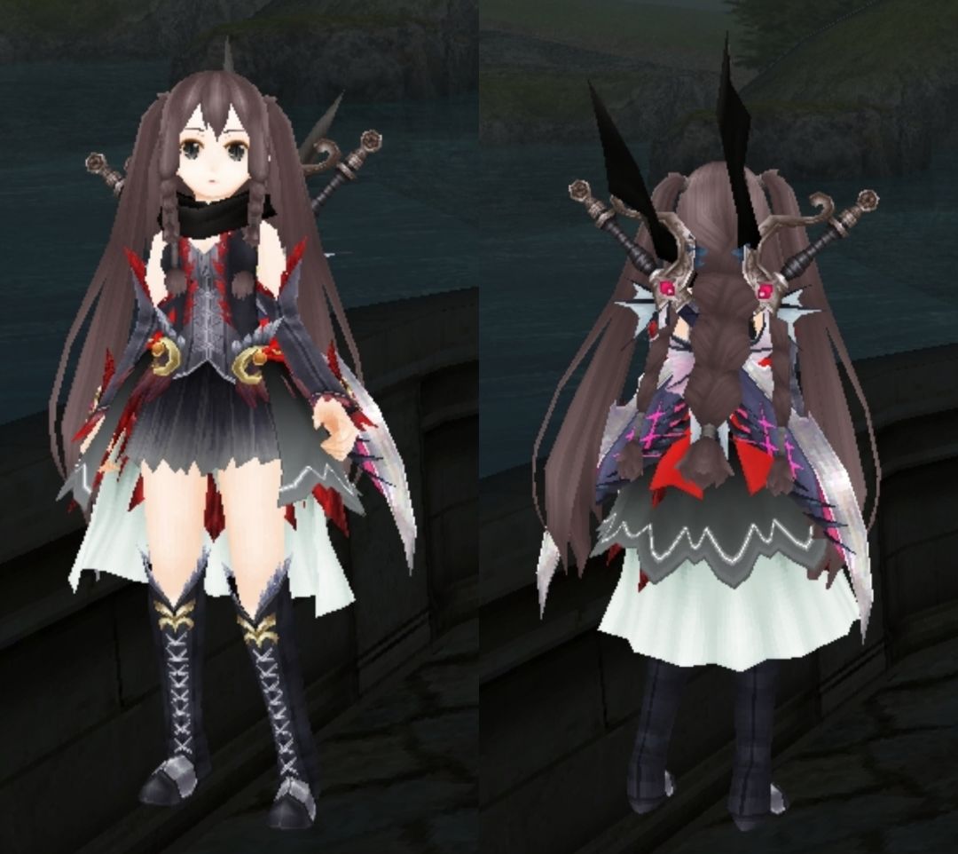 是5周年做的对属双剑的外观来着,一直没发,一眨眼都快7周年了,一共7套,对暗的副手用的是对无的通用单手所以对暗对无的武器一样,懒得摆姿势了(瘫)