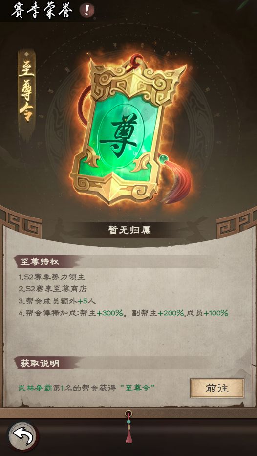 第一名的帮会还会获得专属道具至尊令。称霸武林,号令群雄!