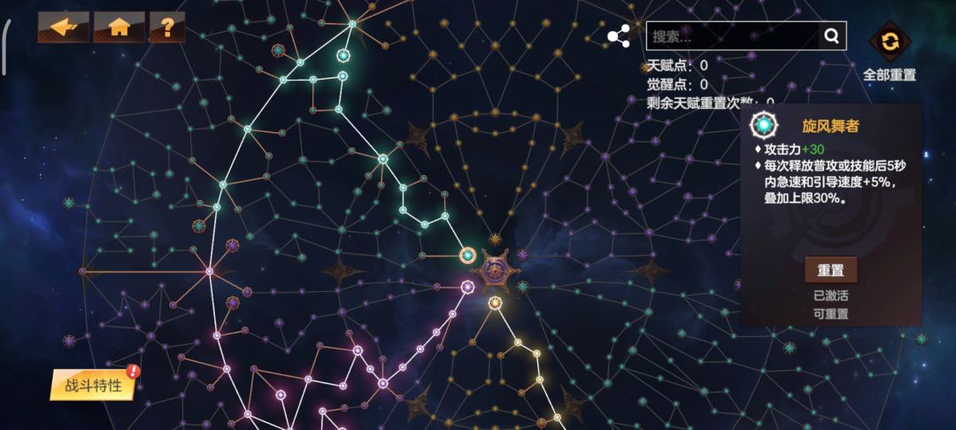 这个时候,我们可以选择往上去点旋风舞者,得到大量的引导速度加成。提高大量伤害。要注意引导速度是否上限了,因为战斗中旋风舞者还会+30%引导速度